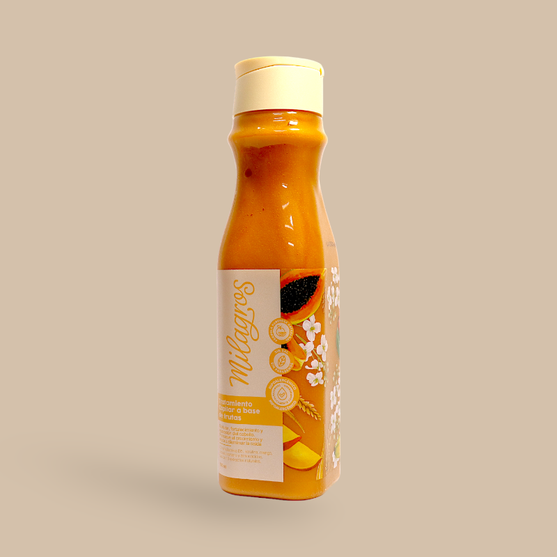 El Tratamiento capilar a base de frutas estimula el crecimiento y reduce la caída del cabello, mientras lo nutre y fortalece. Su fórmula exclusiva, enriquecida con Provitamina B5, aceites y mantequillas vegetales, proporciona hidratación profunda, brillo natural y una manejabilidad excepcional.